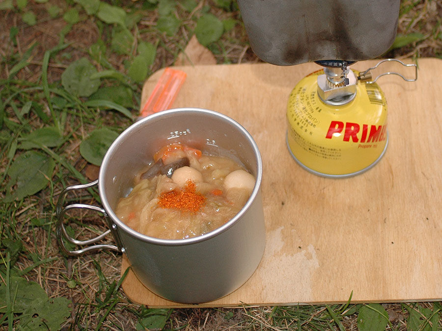 CRUXは今回初めて野外で使用しましたが、プロパン混入の110カートリッジを使った事もあって、火力は強く調整も自在で、上手に飯を炊く事が出来まし た。 今回は晩飯の炊飯にやいり殿にも貸した訳ですが、110カートリッジでも1泊なら丁度もつ様です。1人ならお釣りがくるでしょう。また、この季節ならブ タンでも十分な火力を得られます。 もっとも。今回はほとんど風がない状態で使ったので、仮に風が強かった場合は、ライターの火もすぐ飛んでしまい、着火させるのが難しいかもしれません。 まぁ、そういう時は気合で着けるしかないですが。。