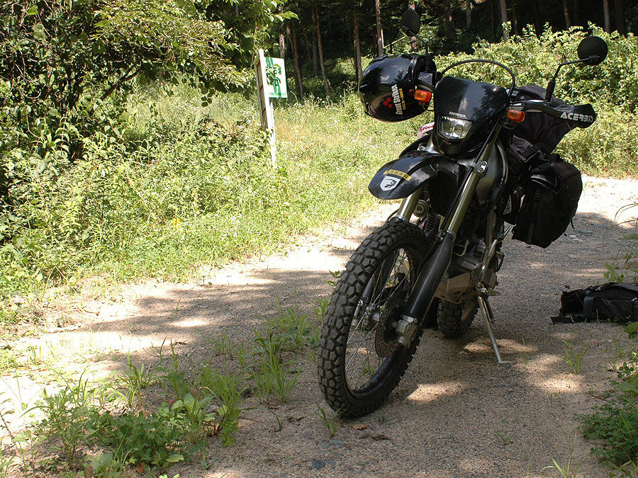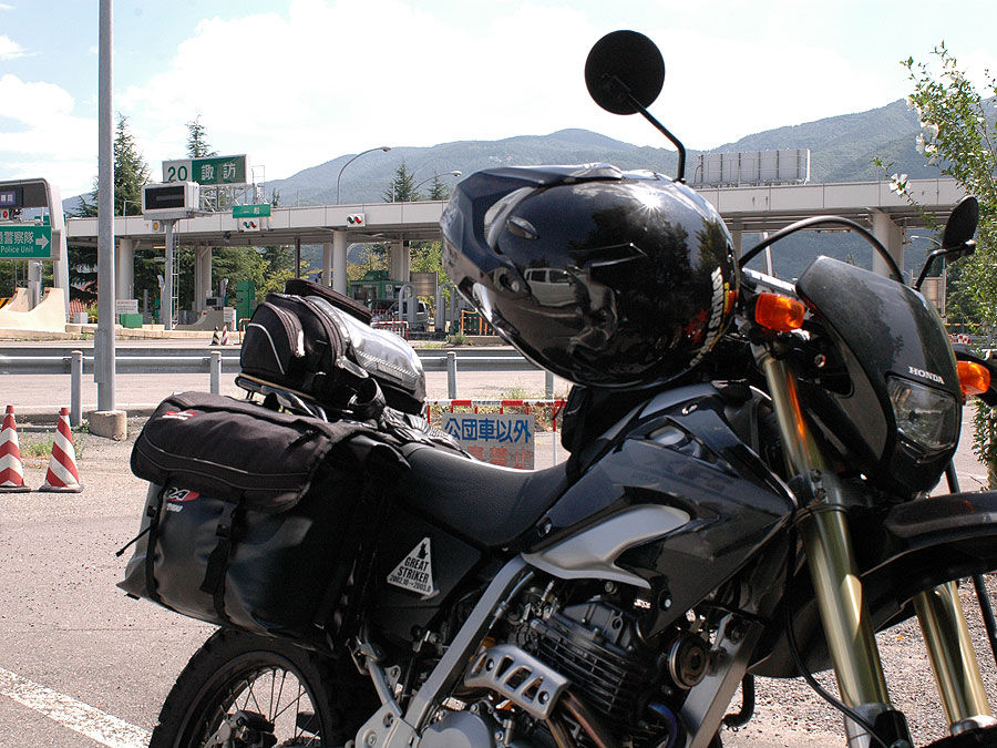 十分暖気して、0940時出撃。真っ新なオイルのせいか、ちょっとエンジンが軽くなった気がします。サスの固さも装備や体重に合ってるのか、初めてノーマ ルサスのXRに重装備を積んだときの様な、重苦しさは全然感じません(バイク屋のあんちゃん、ダンケ・シェーン!)。そのままビンビン時速平均100キロ で飛ばしまくりました。