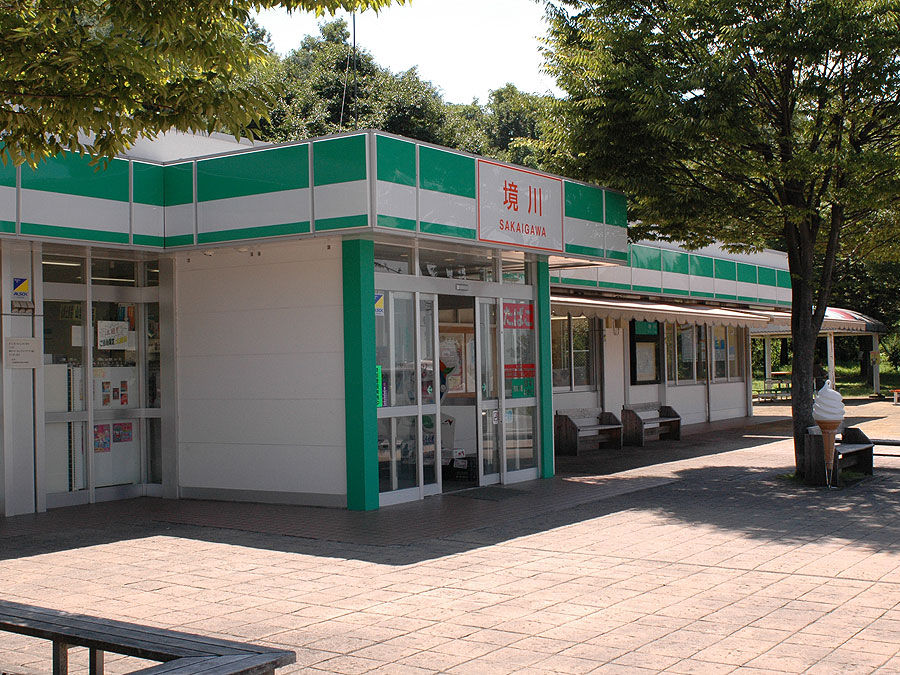 さて、ここから本格的に高速走行に入った訳ですが、時速100kmで走っていても暑いし、同じ格好しているので肩はだるいしケツは痛いし、段々眠くなって くるしで、大変な事になってきました。こりゃイカン、という事で、昨日昼食を摂った境川PAに入って休憩を取りましたが、ここもゴロ寝して仮眠取れる様な 場所はなく、トイレ入ってお茶買って飲んだだけで出発。