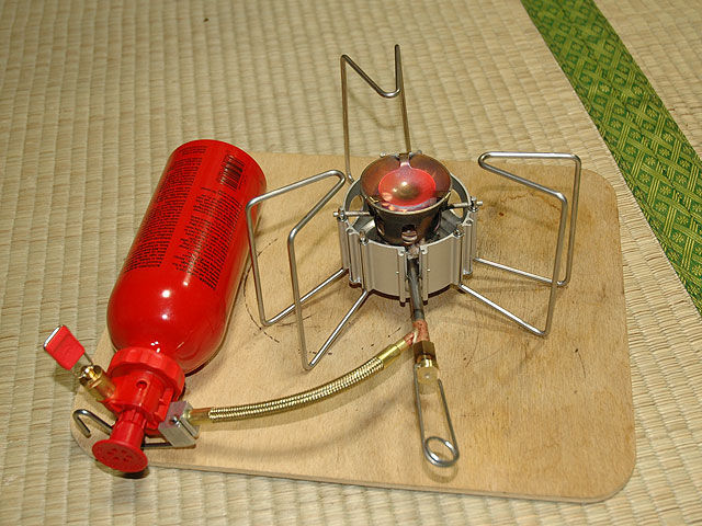 ただ、惜しむらくは、1〜2泊のソロキャンプでは明らかにオーバースペックである事です。バイクを使う作戦であれば、マルチフェルである事はあまり利点になりませんし、ボトルが大きくてもやはり利点ではありません。展開サイズが大きくなるのもソロテントの中で使う(特に雨の日などはそうせざるを得ない)に不利ですし、プレヒートが派手であるため、雨でもプレヒートは外でやらねばなりません。パッキングサイズが大きいのも、極力荷物を少なくしたいソロキャンプでは不利な要素です。