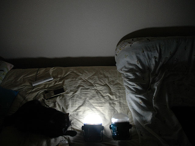 しかし、一晩中ずっと点けている訳でもなく、寝るまで使えたら十分なので、1基は単一電池にし、もう1基はアダプターを使う事にしました。容量があるウチは、単三電池であっても単一電池と同じ照度を持つ事が分かりました。