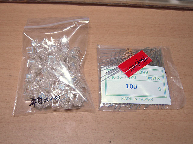 右は秋月電子で買ってきた100オーム抵抗