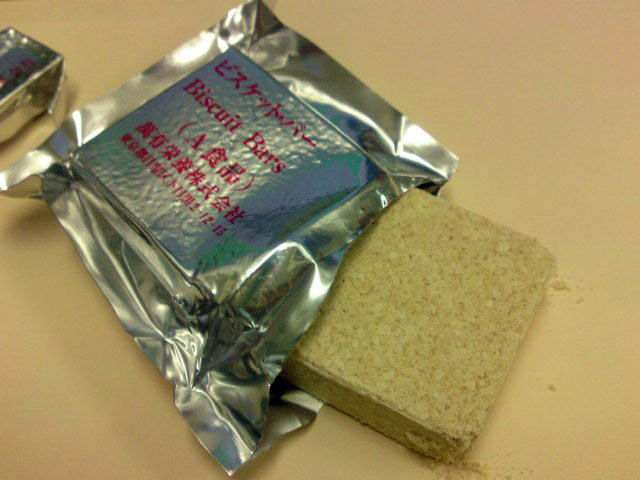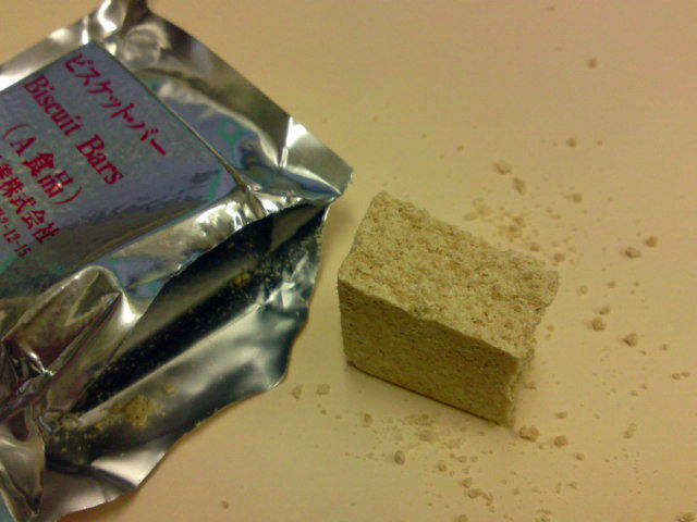 この種の海難用ビスケットは、水がなくても食べれて、かつ喉が渇かないのが特徴です。このビスケットも、まったく喉の渇きを感じさせませんでした。