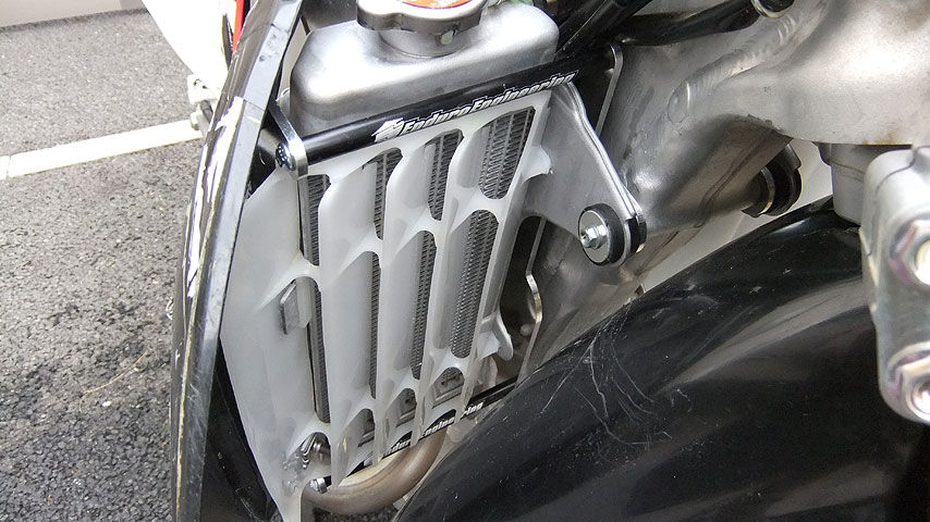 エンデューロエンジニアリングのラジエターブレースは、2010年モデルに付けたまま転売してしまったので、新規に購入する事になりました。またピボットレバーも今まで使っていたCPより新型のFPの方がタッチがイイ感じなので買い換える事にしました。
