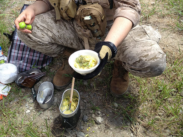 そんなある日、その当時から仲の良かったシュヴァルツ!のヒューゲル連隊長殿と、某SNSで「外でエスビットだけで飯炊いたりパスタ茹でたり出来るのか」という話しが出て、「そんじゃ、固形燃料以外の火器は一切オミットした料理大会をやろう」という話しが二人だけで盛り上がったのでした。そして企画されたのが、第1回固形燃料オフ“コケネン2012”だった訳です。