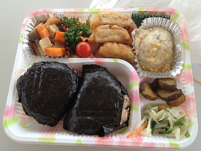 右のおにぎりが何故か、かなり固かった、、、