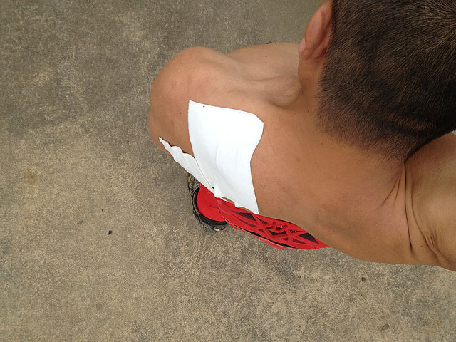 痛むのは肩の関節の後ろ側、関節の内側辺りです。4月のケガでずっと引きずっていた所です。もう治ったかと思ってましたし、今日のレースでも両肩疲れるという感じはあっても、左だけ疲れるという感じではありませんでした。今から思えば、ペースが落ちてきてる時点でかなり肩は疲れていて、むしろアクセルが開けられなくなっていたのだと思います。疲れてる事に気が付かないまま走り続け、左肩の限界がいきなりやってきた、という感じではないでしょうか。もっとも、その時の自分の感情は「まさか!」「またしても!」でしたが。