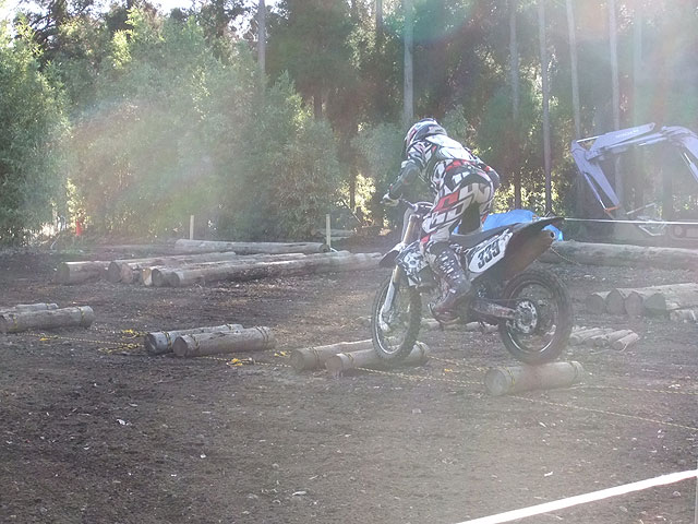 年末に催される女子会では、パドックの一部に丸太などを並べてエクストリームセクションが作られるのですが、これまでは自分にとっては全く無縁なセクションでした。そもそもトライアルに興味があまりないし、曲芸できるほど自分が器用だとも思っていなかったからです。ところが、上手な人がピョコピョコと丸太越えしてるのを見て、自分も何故かちょっとやってみたくなりました。そこで、取りあえず、他の人が簡単そうにやってた、いくつかの丸太を不規則な間隔でロープで繋いだセクションにアタックしてみました。ところが、2つめの丸太に差し掛かった時にリアが1つめの丸太に引っ掛かってスタック、そのまま転倒www どうやら、そのセクション、素人には難しかったみたいです。 こりゃイカンという事で、低いのからチャレンジし、徐々に太めのにアタックしていきました。さすがに積み重ねてあるのとか、大きな石ゴロゴロの所にはチャレンジしませんでしたが、何となく楽しめてしまいました。