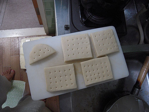バイクに乗れなくなって、かれこれ1か月以上。ネタの補給が底尽きました。そこで、前からやってみたいと思ってた、ハードタックにチャレンジしてみました。ハードタックって何?って人が多いと思うので、こちらをご参照下さい。南北戦争からインディアン戦争あたりまで米軍で使われていたビスケットの一種です。ただし、鉄板みたいだったそうです。乾パンフリークの自分としても、一度は食ってみたい代物です。