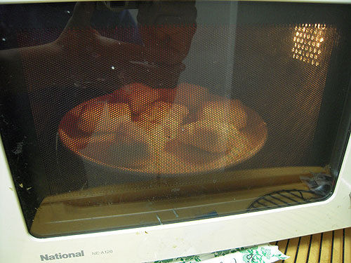 まず、温度は今回は200度にしました。で、一応、60分仕掛けた訳ですが、時々様子を見まして、45分くらいで止めました。というのも、焦げてしまうと、ホント食えないからです。ちなみに、1作目は、どうみても発ガン性物質にしか見えないので、捨ててしまいました。