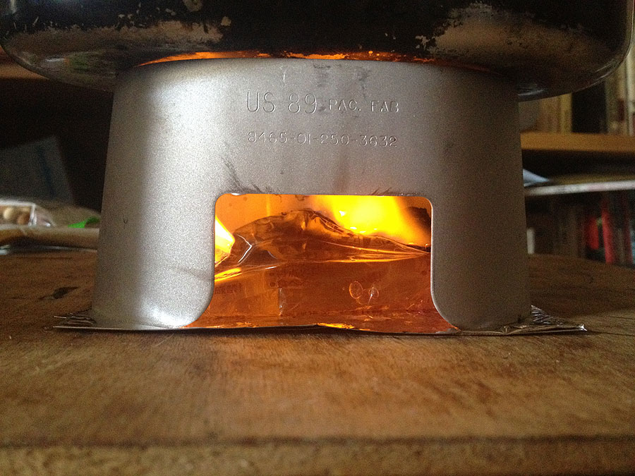そこで思い出したのは、自衛隊では頭からポンチョを被って、中で缶入り固形燃料を燃やして暖を取る、という話しです。同じ様な事をこのUtility Flameでやったとして、ゲルネン同様に有害なガスが出たら、目も当てられない事になります。まぁ、何にしてもソリッドタイプのトリオキサン燃料は復活して欲しいものです。