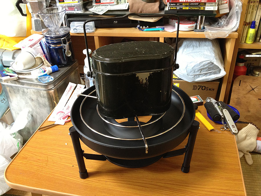 鉄板の他に五徳も付いていて、鍋釜類が使えます
