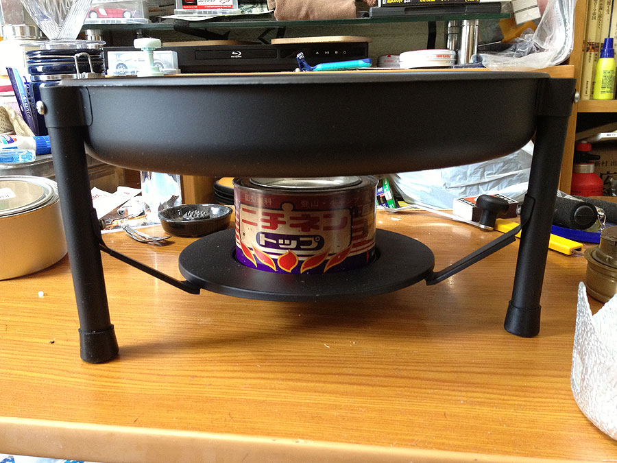このBBQコンロは、250gの缶入り固形燃料を使います。一応、指定ではニチネンの物が書かれていますが、250gの缶であればホワイトプロダクトの物でも大丈夫です。ついでにいうと、ニチネンのトップ丸缶250gとキャプテンスタッグのファイヤメイト固形燃料250gは缶のペイントが違うだけで、形はまるっこ同じです。恐らく製造元が同じなんでしょうね。でも値段は、ニチネンのが平井のホームズで398円、ファイヤメイトは奥戸のビバホームで498円です。この100円の差もよく分かりませんw