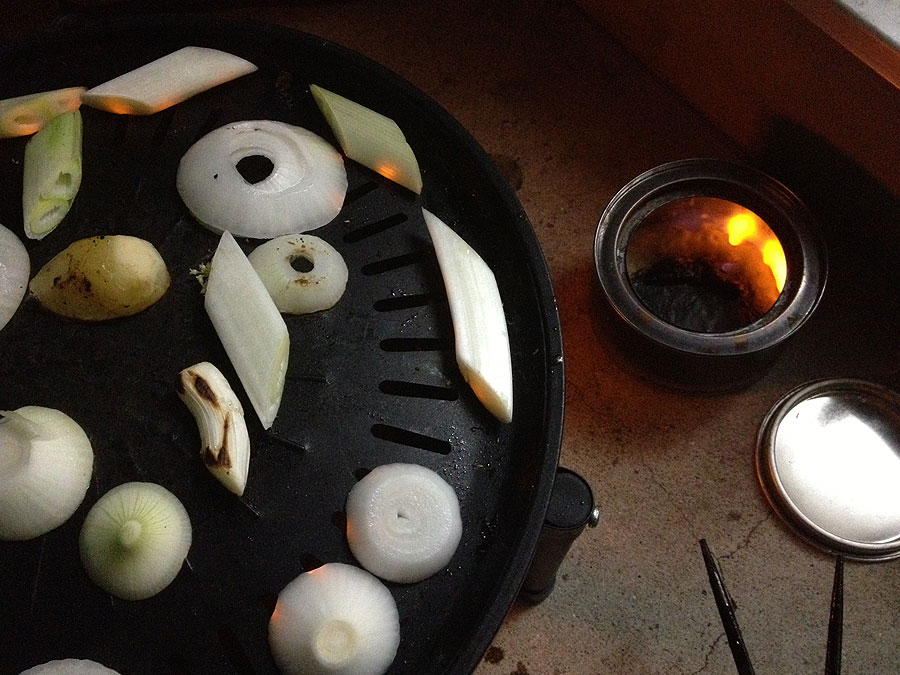 やってみて分かったのは、これが意外に「使える!」という事でした。屋外で使ったにも関わらず結構な火力です。肉は言うに及ばず、タマネギとかジャガイモとかもちゃんと火が通ります。コケネンも風よけなしで大体1時間くらいは火力を維持しました。