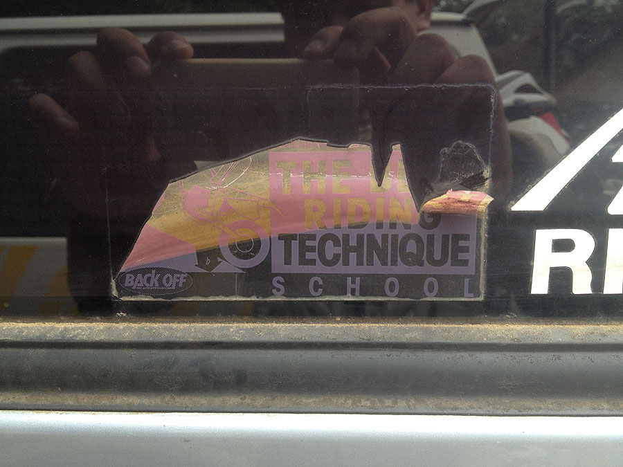 午後になると、グチャグチャだったところも大分乾き始め、イイ感じのコンディションになってきました。そこで午後は全力気味で走るのをメインにしました。まぁ、全力気味といっても、ぶっちゃけ遅い訳ですが、大事な事は自分が「しんどい」と感じれるほどアクセル開けて走る事だと思います。ちなみに、水泳では全力で泳げるのは50mが精一杯で、その後5分ほど休まないと次泳げません。その様な訳で、疲れたら休んだり、ゆっくり走った仕上げに速く走ったり、という感じで、イイ感じに自分に負荷を掛ける様にしました。今回、ライディングそのもので気を付けた事は、前にスクールで習った背筋を動かしてフォームを作る、というアレで、ほとんどその事だけ意識して走っていました。実は、日頃スクーターを乗る時も意識して乗っているのですが、整備されたアスファルトの道を走るのと、オフロードではやっぱり勝手が違って、なかなか上手いこといきません。まぁ、この辺りのバランス感覚は、それこそ繰り返し繰り返し走って身に付けるしかないかな、と思います。