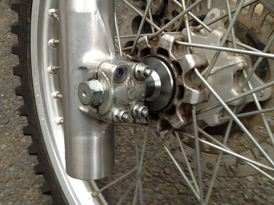 大パニックに陥りましたが、ともかく慌ててバイクをトランポに格納し、バイク屋さんに電話。幸いにもフロントフォークから生えてるスタッドボルトの交換で対処出来そうです。