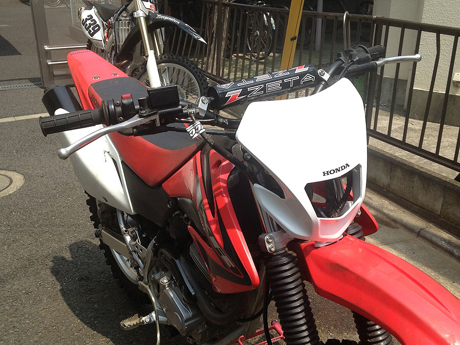今回、XR230を調達するにあたって使用する目的は、「オフロード練習に特化させる」という事にしていましたので、不必要な装備は一切合切外し、逆にコース走行に必要な装備を一気に艤装する事にしていました。具体的には、