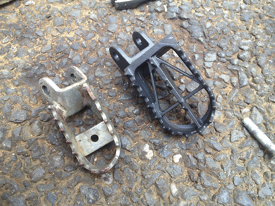左が純正のステップ、幅の広さが全然違います