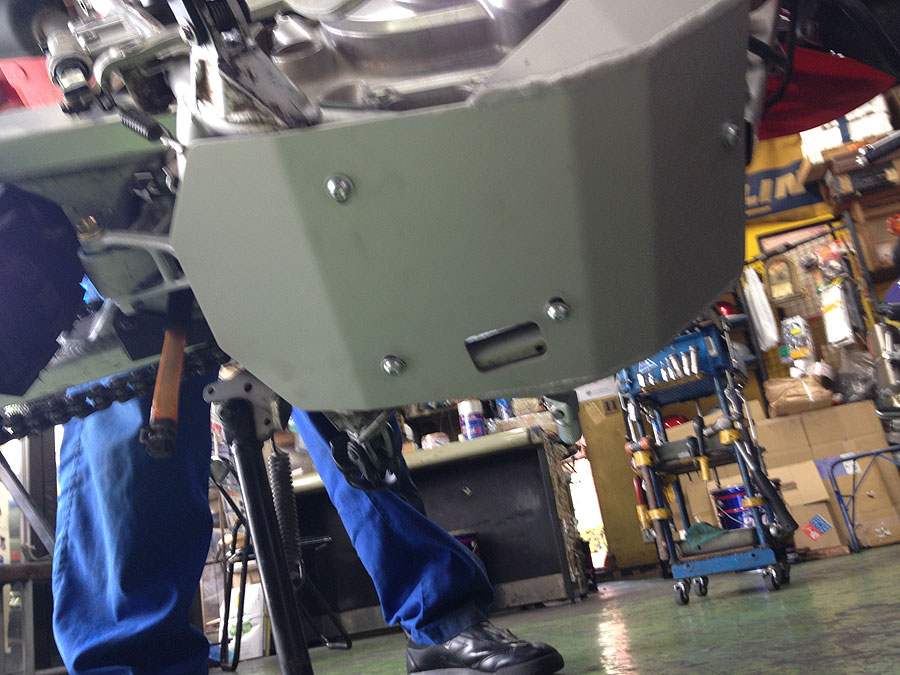 ピンぼけで恐縮ですが、エンジン下部を全部覆っています