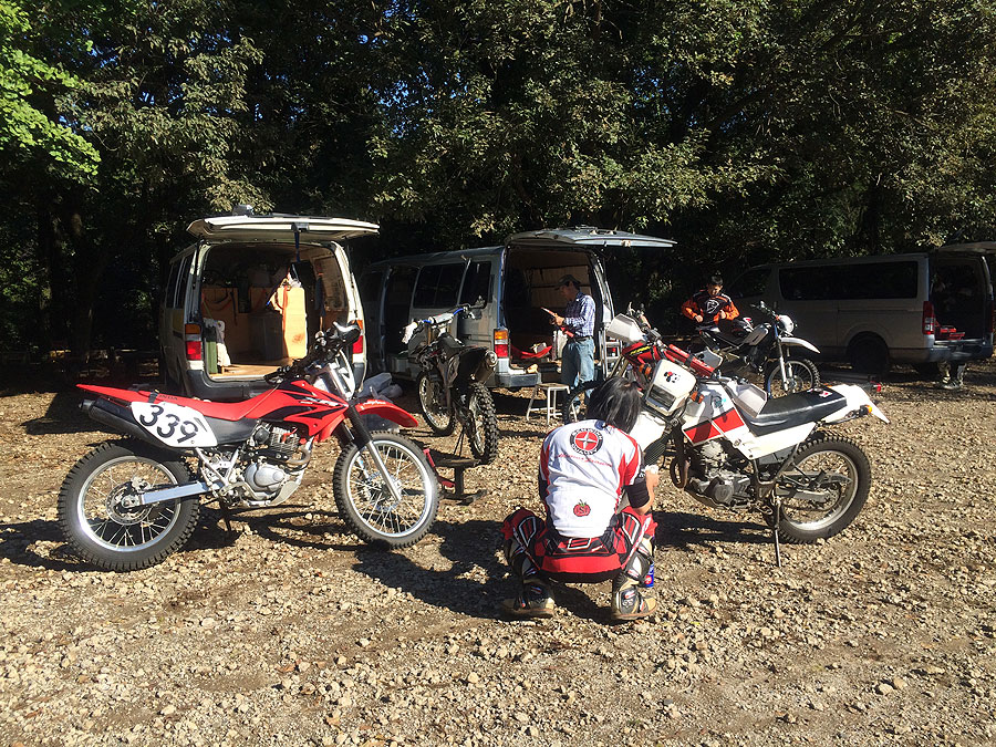 また、トレール車だけあって慣性力は強いので、高いギアで少しエンジンの回転が落ちたとしても、それなりにスルスル走ってくれ、かつ粘りを見せます。練習の後半では、4速(うっかり5速入ってる時もあった)で走る箇所が多くなりましたが、意外によく走るバイクだという感想を持ちました。