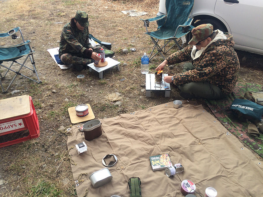 ちなみに、自分がこのオフに備えて様々準備したのは、ロゴス:ハンドル付き飯盒、陸上自衛隊:戦闘飯盒2型 、兵式飯盒蒸し器、兵式飯盒4リットルオイル缶風防、イタリア軍飯盒、などなどでした。