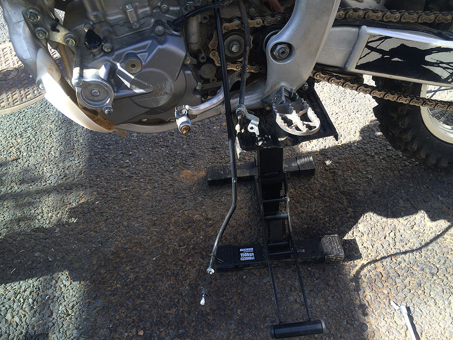 先日の谷田部の練習会の時、自分の身体も絶不調だったのもさる事ながら、CRF250R“モルゲンシュテルン号”の方もイマイチで、全然頑張って走れる様な感じではありませんでした。全体的に重苦しく、何となく固い感じだったのですが、具体的には、アクセルとクラッチレバーが重い(ワイヤーがダメになってるっぽい)、前後ホイールのベアリングの打ち替え、あとステムとリンク周りのグリスアップ(リンクは半年、ステムは1年やってない)、ここらをやらんといかんなー、という感じでした。