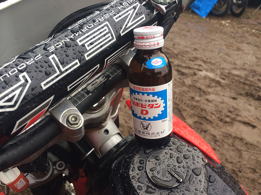 しかし、それにましても今回はバイクに助けられるところが大でした。特に、10丁のトライアル用のフロントスプロケは絶大な威力を発揮し、車速は全般的に遅いながらも、どんな坂でもどんな低速でもノシノシの登って行き、決して滑ったり止まったりする事がありませんでした。このバイクに全般の信頼をおいて走りに専念できた事から、今回のレースはひどいコンディションであったにも関わらず、楽しんで走る事が出来ました。