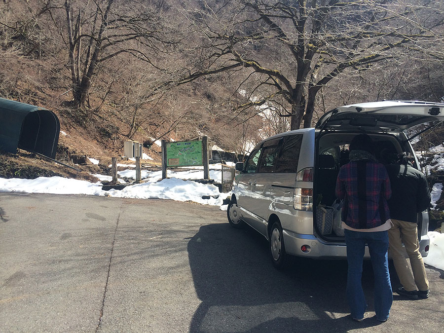 ともかく、レンタカーに乗り込んで行軍を開始した訳ですが、今度は道がエラい渋滞でなかなか青梅市に着きません。3連休の初日だからか、奥多摩の梅園に見物に行く人が多いのか、ノロノロしてなかなか前に進まない。途中、コンビニで休憩したり、スーパーで買い物したりして、4時間ほどして、ようやく海沢川に到達しました。