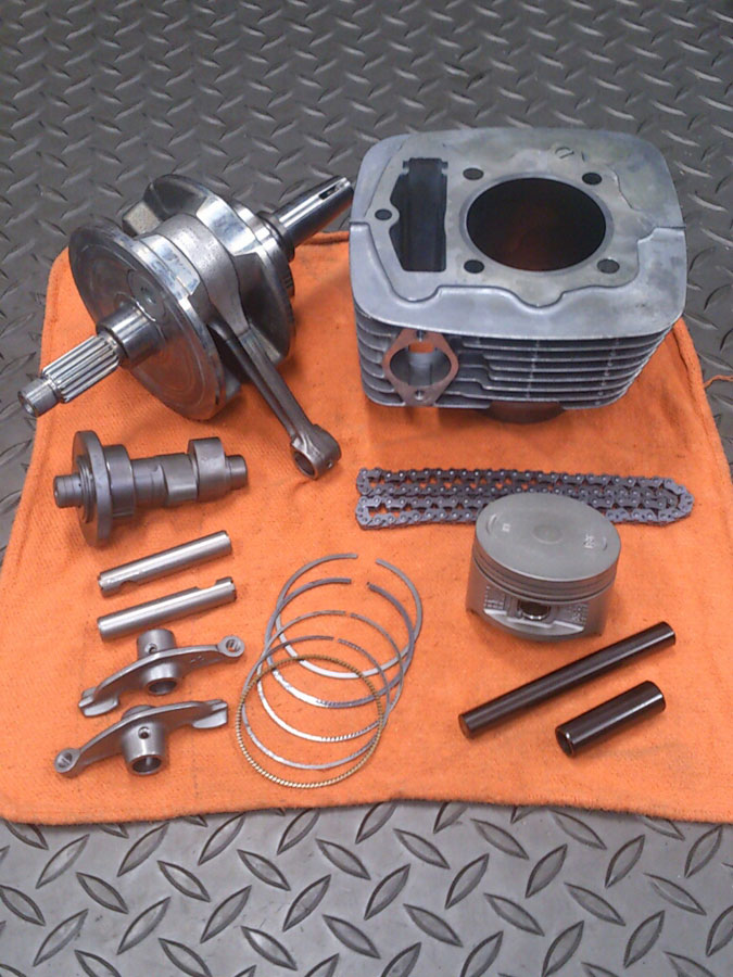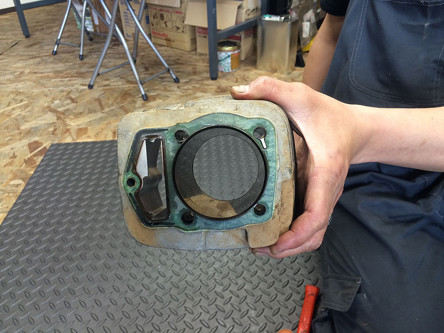 シリンダーを分解し、ピストンをむき出しにして、腰上の状態を診てもらいました。まぁ、バルブクリアランスもシリンダーやピストン、ピストンリング等、まぁそれほど酷い状態になっておらず、普通に交換という運びになりました。