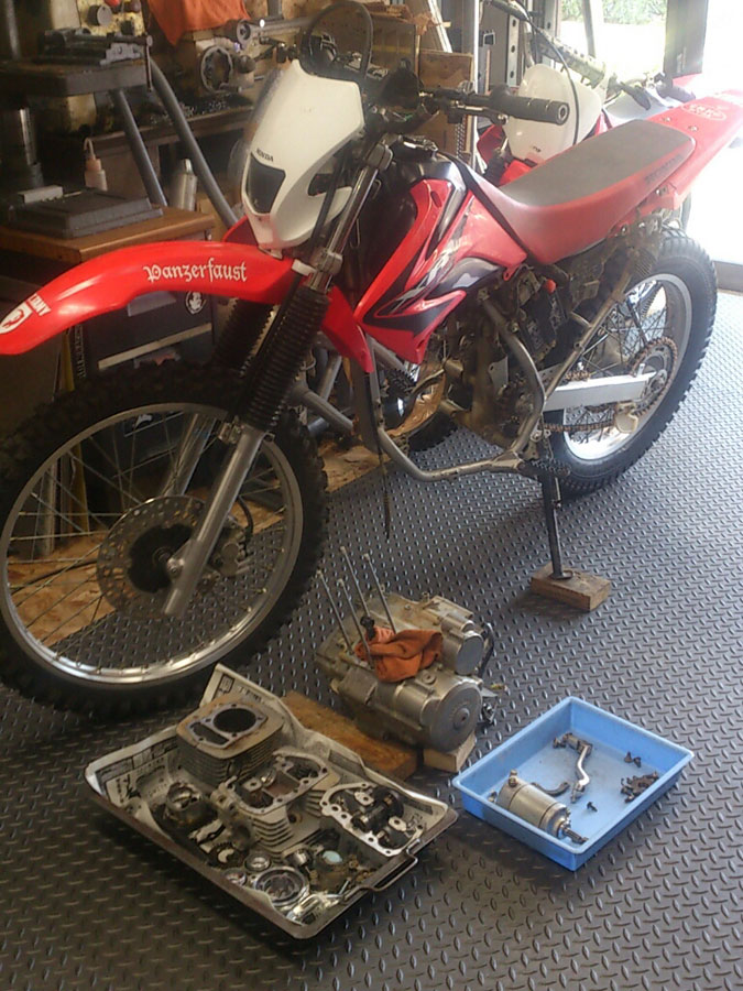 去年の夏にXR230を引き取って以来、あれやこれやと手を入れてきたのですが、年式的には恐らく10年物であろう事、今後もこのバイクは使うつもりですし、仮にレース活動止めても手放さず乗り続けると思うので、思い切ってエンジンのオーバーホールをする事にしました。