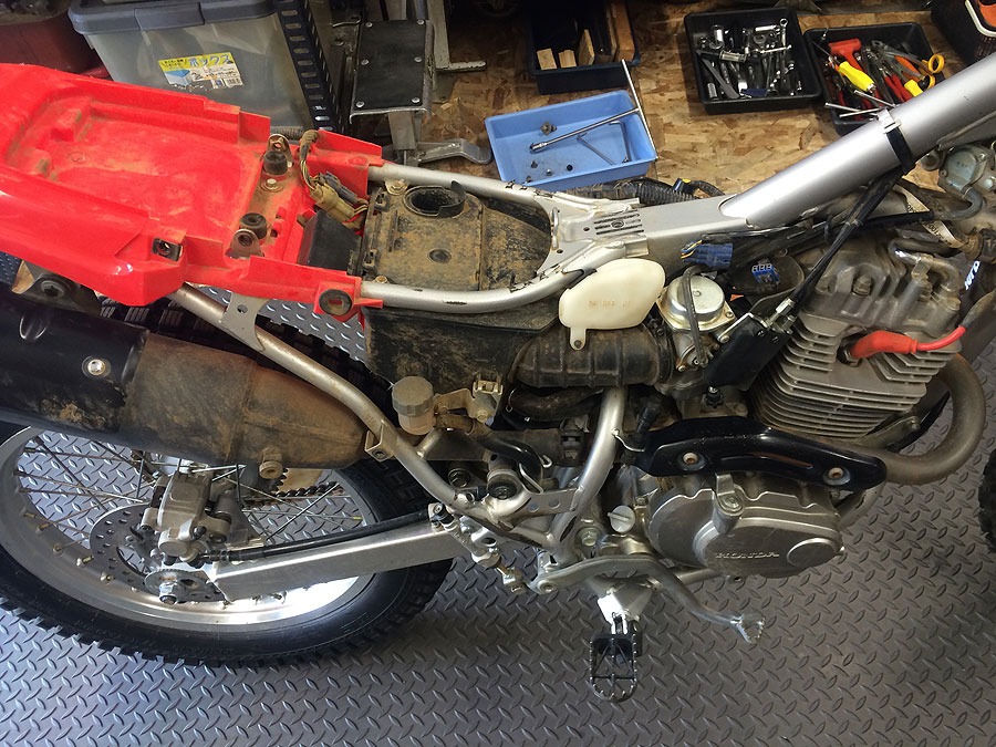 予算的には中古のXR230が買えてしまう金額になるのですが、先にも述べた様にこのバイクはもはや廃番で新車はなく、かつ今後先々も長く乗り続けるつもりであるので、最初からババーンとオーバーホールするつもりでしたから、金額に目が眩むなんて事はありませんでした(笑)