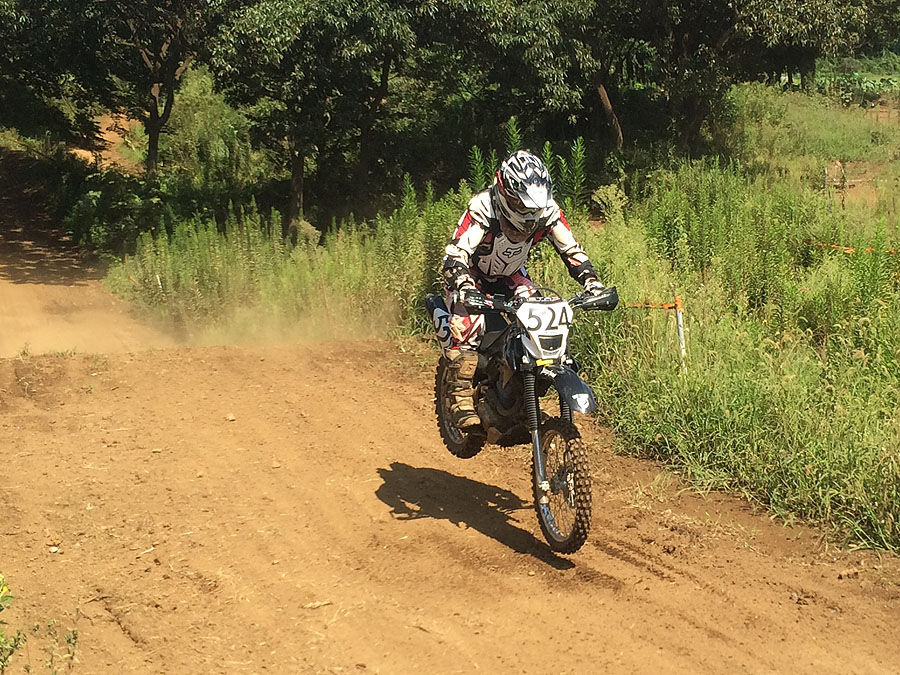 ウッズは、掘れてる所以外は、思いのほかグチャグチャではなく、それなりに走り易かったのですが、それでも滑り易い所では滑って転けますし、転けたら起こすのに本コース1周分くらいの体力を使うので(バイクが重くて難儀する)、走り込みのために本コースだけまた走る事にしました。本コースも陽が当たって朝一番の時よりさらにコンディションが良くなり、自分もバイクやコースに慣れて、少しは開けて走る様になってきました。車速が上がると必然的にジャンプの飛距離も伸びてくるのですが、XR230は上手に飛ばないと、ガシャンと直ぐ底付きするバイクです。単純なジャンプはともかく、ダブルとかフープスは無理して飛ばずに舐めた方が安全ですし(フープスはCRFでも2個飛び出来ませんがw)、またその方が早かったりもします。