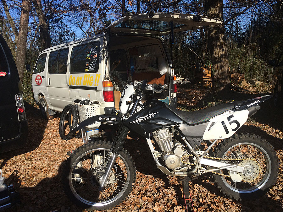 先月の練習で左膝を捻って、しばらく練習もお休みしてたのですが、その間にさらにXR230“パンツァーファウスト号”に改装を加え、かつガタガタになってたニーブレースも修理に出し、いつでも走れる様に準備しておきました。問題は身体の方で、今年の5月くらいの時と比べると、全体的にいろんなところが衰えた様な感じで、なかなか頑張りが利きません。頑張るとケガしたり病気したり、といった感じです。なので、無理しない程度に頑張る方針です。