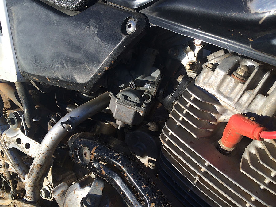 ところで、XL230のキャブレターのチョークレバーはキャブレターの裏側に付いていて、タンクとエンジンの奥の方にレバーがあるのですが、意外にもバイクに跨がったまま、上体をかがめて左手を突っ込んでレバーにアクセスする事が出来ました。