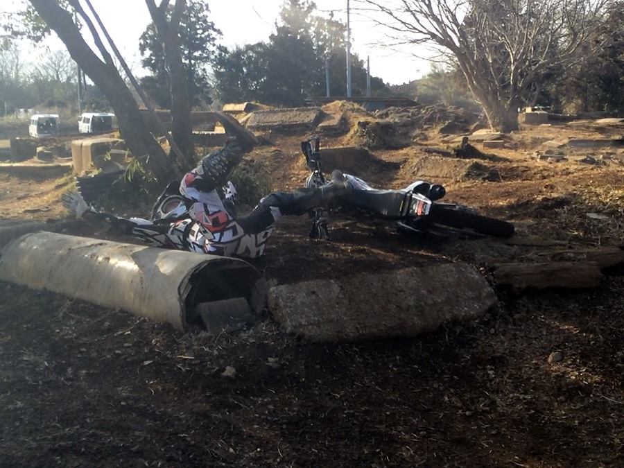 今度はヒューム管に挑戦してみましたが、フロントは管に乗るものの、リアが引っかかって失敗。再度チャレンジしましたが、やはり失敗で今日のところは止めとく事にしました。去年は出来ていたのですが、感覚を忘れてしまった様です。察するに、フロントアップ量とアクセルを開ける量が足りない様に感じました。(ボディアクションも足りないと思います)
