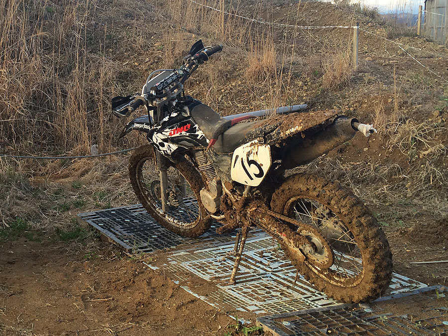 さて、そのバイク作りもおおよそやれる事はやった、という事で、今年から作ったバイクを試す段階になったと判断しました。出来ればデコボコランドで試したいところですが、残念な事に5月10日でクローズが決まってしまいました。となれば、XR230“パンツァーファウスト号”が活きそうなコースは、ベストテクコース市貝だろう、という事で、今年からモチュールカップに復帰する事にしました。
