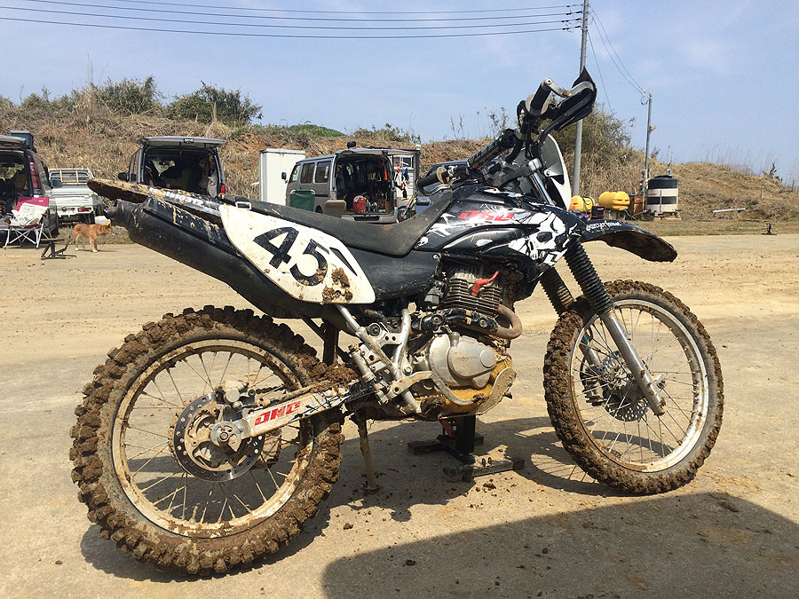 バイクの仕上がり具合は、この一年色々やってきたお陰で、おそらくXR230としては最高レベルの仕上がりになったと思います。とにかく、もともと強心臓のバイクでしたが、それが更に強力になり、かつエンジンの回転がスムーズで、アクセルの開閉とエンジンの回転がイコールになって、思いのままの操作が容易になりました。この辺りは、エンジンのフルWPCやキャブをPDに換えたのが功を奏したと思われます。