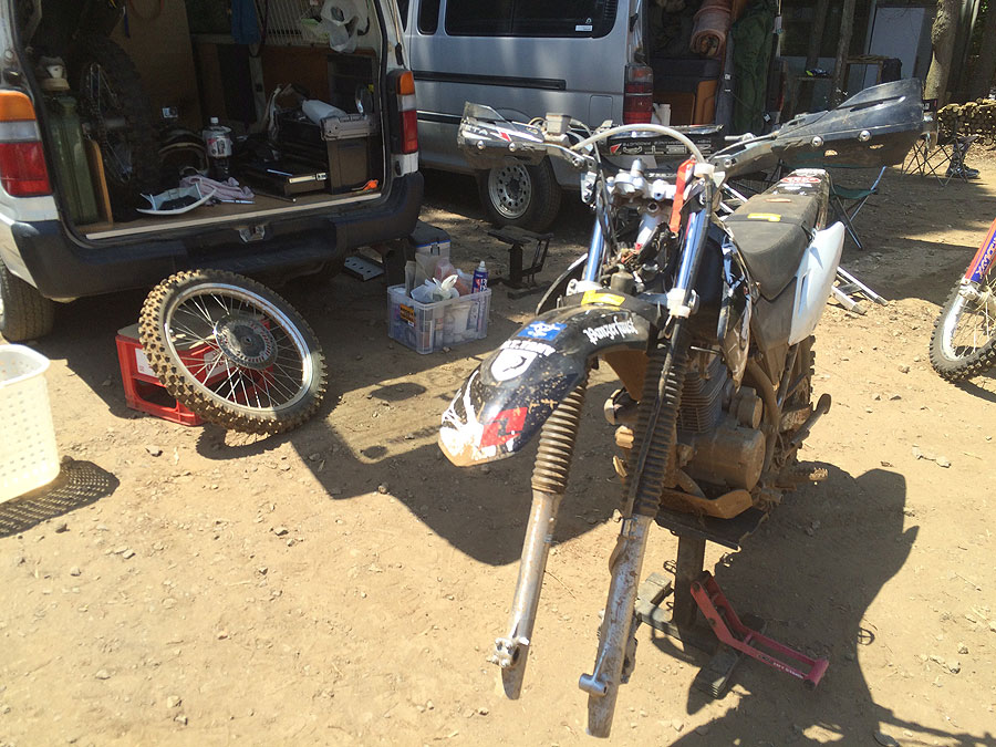 先日6日に、XR230“パンツァーファウスト号”のクラッチを模擬レースで滑らせてしまい、それでもデコボコランドのラストランを走りたかったので、無理を言ってバイクを直してもらい、ラストランに駆けつける事が出来ました。