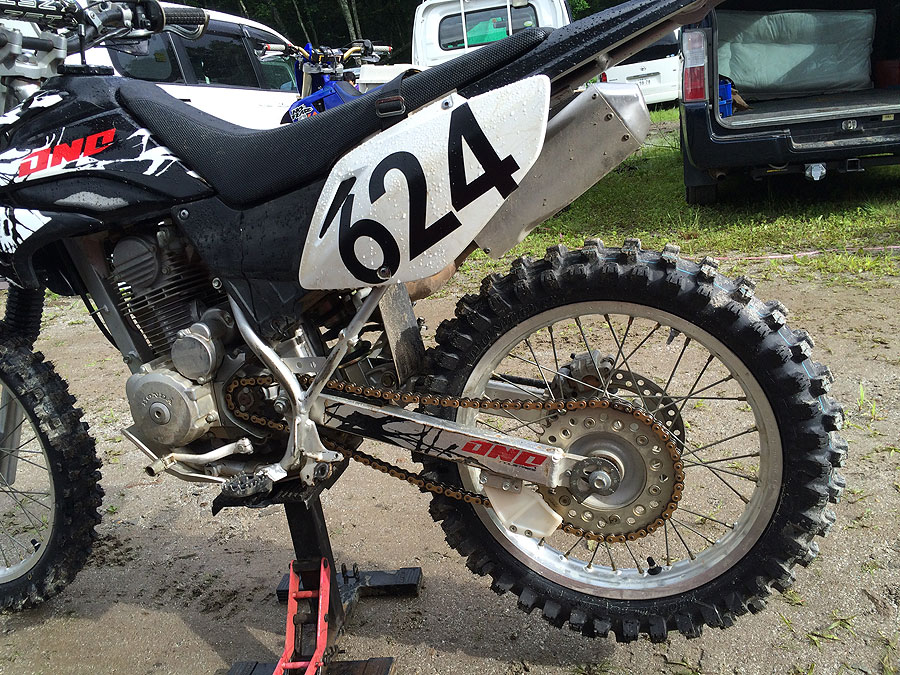 昨年、恥辱の1周リタイアに果てたWEX爺ヶ岳ですが、この一年はそのリベンジに全力を費やした、といっても過言ではありませんでした。表彰台に上がりたいとか、そういった大それた事ではありません。「前に進んで当たり前のバイクがちゃんと前に進んで欲しい」「爺ヶ岳では一度も完走してないから、ともあれ完走」こういった些細な目標を掲げて、大改装したXR230“パンツァーファウスト号”で乗り込んだのでした。