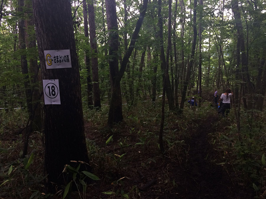 さて、1周目に費やした時間は、65分。非常に微妙な残り時間です。のこり15分なら、チェッカーの前で待機って手もあるのですが、さすがに25分もあったのでは、その手はみっともなくて使えません。さりとて2周目行ったとして、残り時間は25分と20分です。1周に65分も掛けてたのでは、せっかく2周目走っても、カウントされない可能性が大です。となれば、行くとなれば、最低でも40分くらいで帰って来なければなりません。しかしまぁ、どうあれ1周走って来たのは大きな勇気となりました。せっかくですから、もう1周行く事にしました。難儀するのは、ファンガレとその後のガレ下り、ウッズ前のモコモコ坂、ウッズ、RRR、この辺りです。あと、ウッズ以降のアップダウンは結構デコボコで突破に難儀しますが、ともかく疲れてたら休む、その他は統制前進をやめて突進に切り替える事にしました。