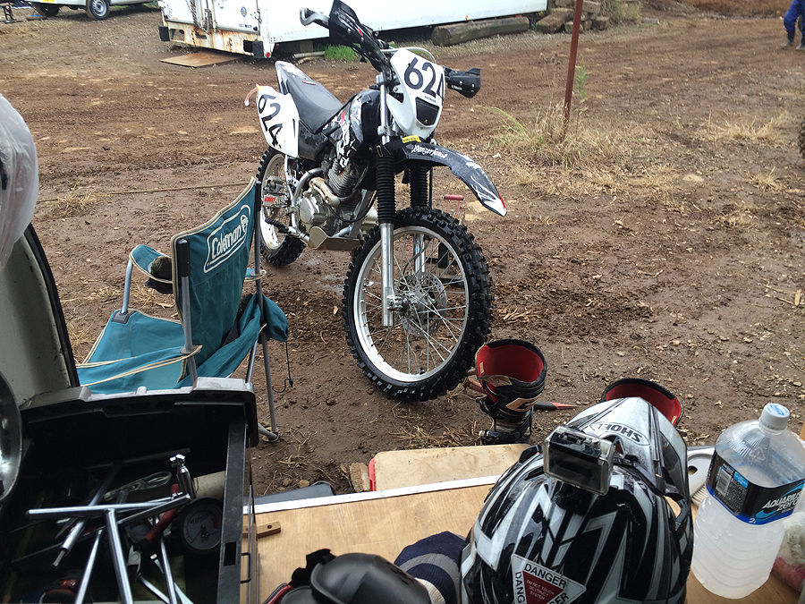 こんな感じで、今回は練習というより、いいところ、運動しに行ったという感じの内容でした。自分は今ひとつな感じでしたが、XR230“パンツァーファウスト号”の方は絶好調で、クラッチもまったく異状なし。オイルは10W-40を使っているのですが、熱ダレする様なところもなく、調子いいです。ただ、気温が下がってギャブが若干薄くなってきたのか、アクセル戻す時にパンパン言う様になりましたので、その辺りを調整した方が良いかもしれません。エンデューロコースは、諸般事情あって、途中から走行出来なくなったのですが、また新規に作り直すとの事。これからも成田MXパークはエンデューロ練習コースとして期待大です。
