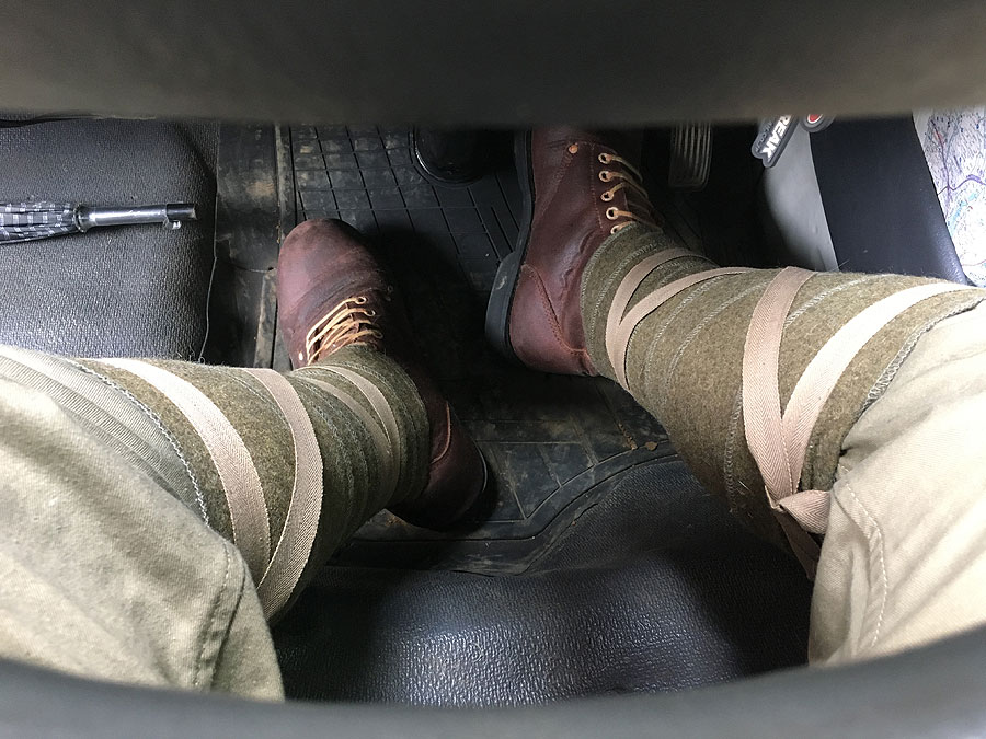 予定よりも30分遅れて起床。起きたは良いが、シンドイわ眠いわ寒いわで、かなりテンション下がってしまったのですが、行くと約束した以上は行かん訳にも行きません。この寒さでは、防暑襦袢とかじゃ風邪引いてしまうので、九八式の夏衣袴(冬衣袴は持ってません)を着用。いつも5分も歩いたらズレズレになる巻脚絆も、今回はちゃんとふくらはぎの上まで巻いてズレない様にして、トランポで出かけました。