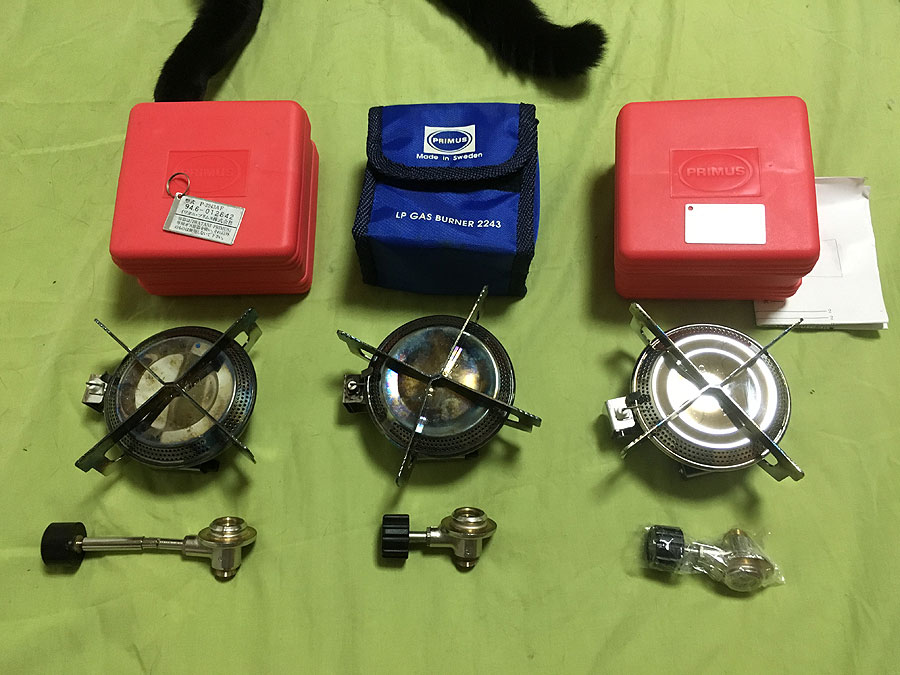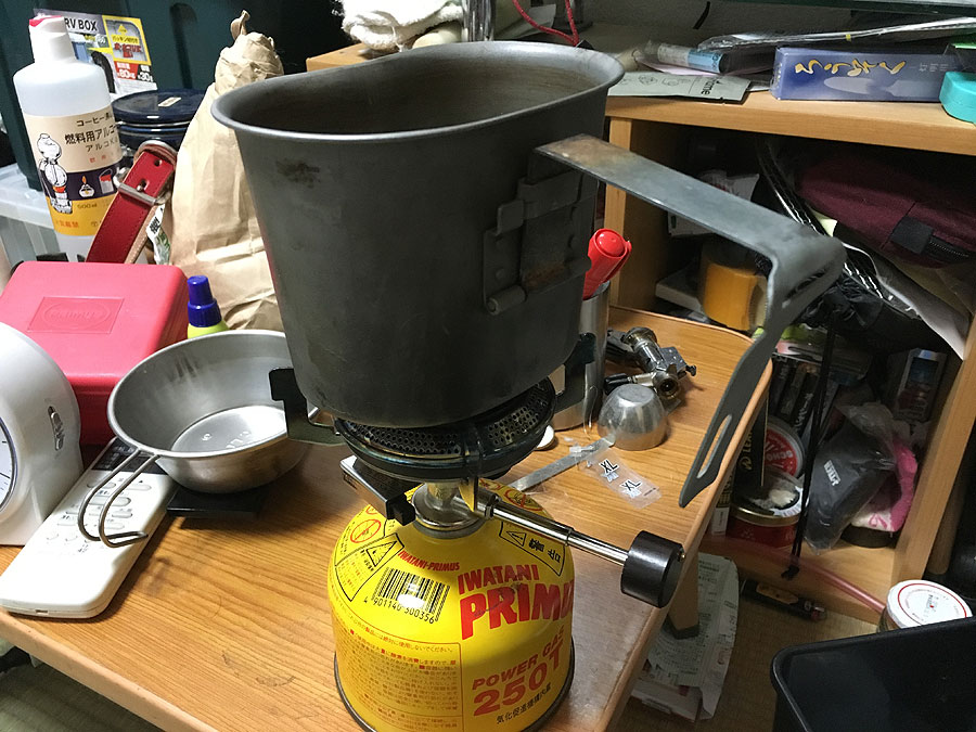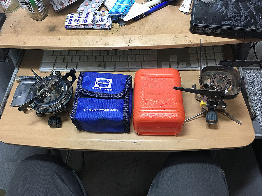 IP-2243を再就役させる前は、飯盒炊爨の必要がある時だけ、コールマン550Bを持って行く案もありました。火力は2,000kcal/hと低い訳ですが、バーナーが大きく、かつガソリンストーブなので気温が低い所でも上手に飯が炊けるからです。ガスストーブは使っているウチに気化熱でガス缶が冷えてしまい、火力が弱くなる印象が強かったのです。