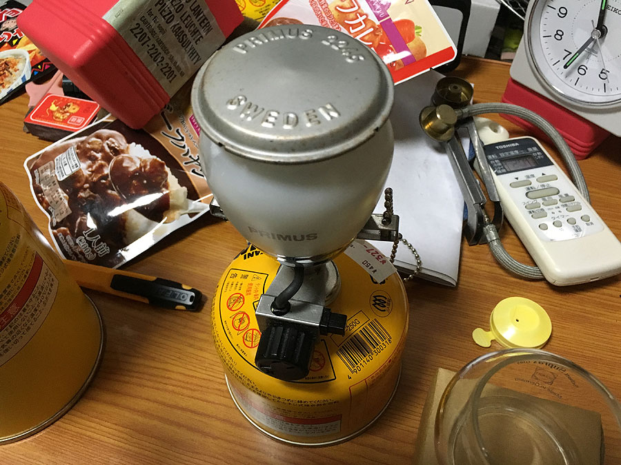 キャンプでの照明器具は、今ではLEDライトやランタンが主流で、しかも非常に小型で長時間使える物が多く、便利になったとつくづく感じます。しかし、自分がアウトドアの趣味を始めた頃は、ガスランタンと豆電球のヘッドライトが一般的でした。そのガスランタンも、灯油のランプより明るく、ガソリンランタンより小型という事で重宝したものです。