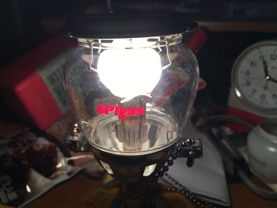 ところで、このIP-2245は、ガソリンランタンなどに比べれば明るさが足りないので、昔使っていた時は、オプションのクリアのホヤに替えて使ってました。ところが、今はプリムス純正のクリアのホヤや売っていません。そこで代替品を探したのですが、スノーピークの2WAYランタンとEPIのマイクロスーパーランタンの物が取り付けれる事が分りました。どちらもドイツ製のSCHOTTのグローブなのですが、スノーピークは値段が1,800円程度、EPIは1,000円程度。スのーピークはSCHOTTのロゴマークしか入っていませんが、EPIはSCHOTTのゴロの裏に赤々とEPIgasのロゴマークも入っています。プリムスのランタンにEPIのホヤつけるのも癪な話しですが、800円も高いのを付けるのもなんだかな、という感じ。結局、良く見比べてみると、ホヤの縁の部分の形状が、プリムスとEPIは全く同じだったので、EPIのロゴが入ってるのには目をつぶって、安い方を買いました。