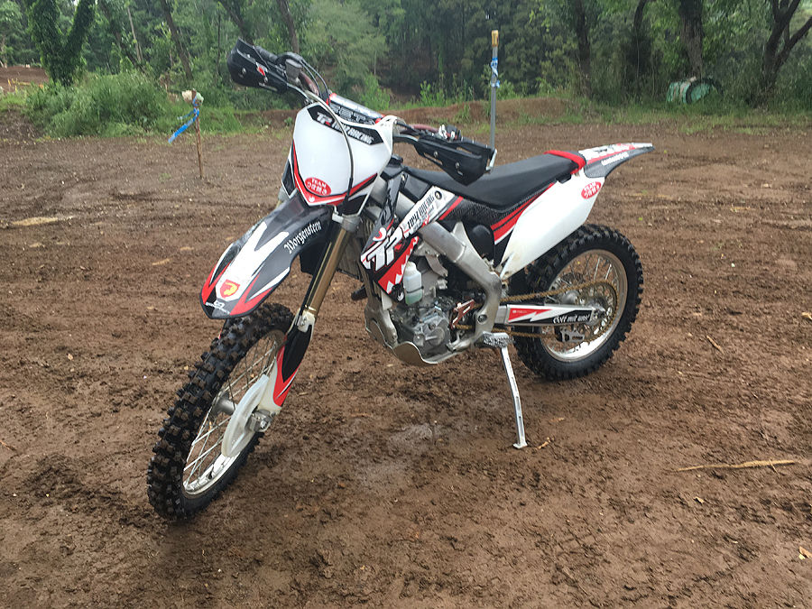 今回、一緒に練習した人で、2016年モデルのCRF250Rに乗ってる人がいたのですが、FIの設定をエンジンモードがアグレッシブのままになっていて、難儀してました。後で気が付いてスムーズに変更したら乗り易くなったと言ってました。実際にアクセルを開けた時の排気音を聞いていると、アグレッシブモードだと結構パワフルで、スムーズモードだと大人しく、違いが顕著でした。うっかりアクセル開いたら滑ってしまう様な時には、スムーズモードの方が良い訳です。