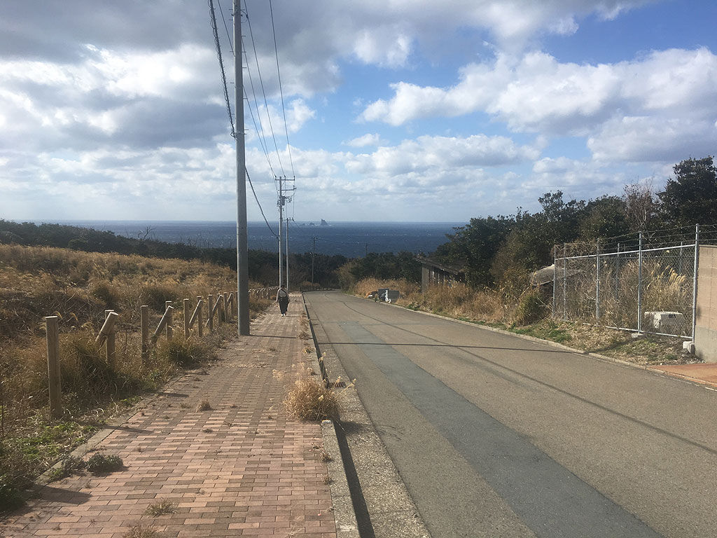 とはいえ、歩くしかないので、第1パドックに向かう雄山林道の起点である錆ケ浜を目指して行軍を続けました。途中、レンタルバイク屋を見つけたので、バイク借りようと思ったら休業中。仕方ないのでさらに歩き続け、雄山林道の急な坂に入ったのですが、行けども行けども第1パドックが見つからない。もしかしたら間違えたかかもなー、と思ってた時、通りがかかったバンの親切なおじさんに拾って貰う事が出来て、七島展望台まで連れてってもらえました。