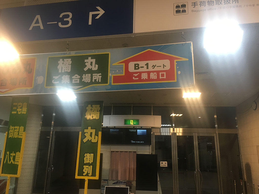 帰りの船は1330時着岸という事で、その30分前に島の薬局で買った酔い止めを服用しました。この薬の効果は絶大で、全然船酔いもなく、東京湾に入るまで船の揺れも振動も気にする事なく爆睡してました。今回の旅行で最大の成果は、如何に船酔いを防止し、効率良く睡眠を摂るか、という事を学習する事であったと思うのですが、結論からいうと、出航前に酔い止めを飲み、東京湾の夜景など眺めて遊んでるのではなくて、浦賀水道を抜けるまでの低速航行の間に寝てしまう、これに尽きると思います。