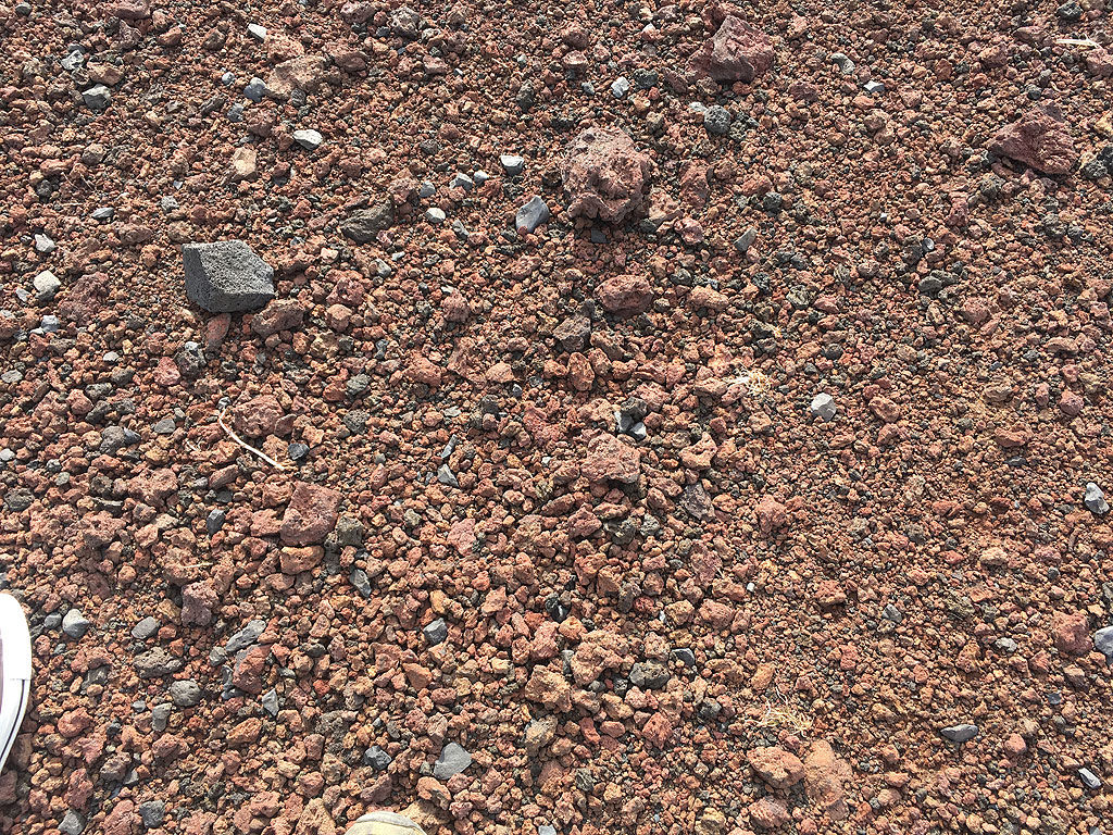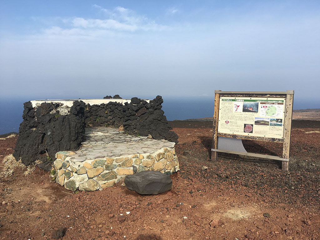 路面はほぼほぼ火山灰で、地面の硬い所はコケたらヤスリで削られる様なダメージを受ける予感がしました。逆に締まってない地面は火山灰がザクザクとしてて、大雑把なサンドの様。降りではグリップせず、登りではパワーを食われる様な気がしました。七島展望台のそばも走る様ですが、例の風で流されたり飛ばされたりすると、崖落ちしてしまうかもなー、とか思ってました。