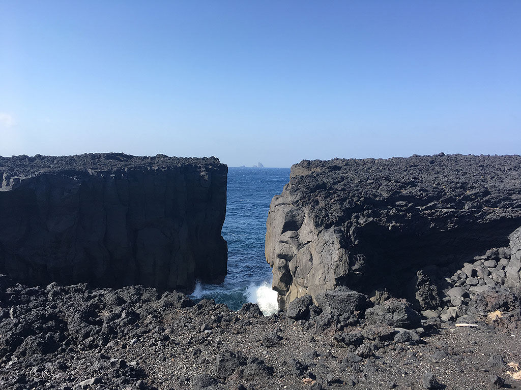 今回の日程は2泊4日という事で、4日目の午前にチェックアウトですが、船が出航するのは1330時という事で、出港時間までペンションの近所を散策しました。前日に引き続き、やはり火山由来の名所です。今回も歩きで回ったのですが、これが結構な運動です。その代わり、スクーターでは見落としそうな所も見て回れました。